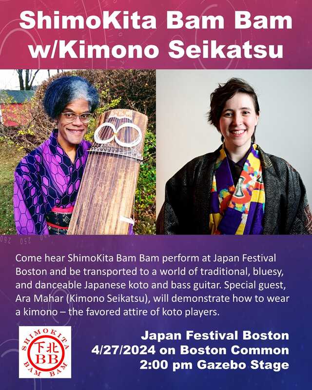 Ara did a live kimono dressing as part of a musical performance at Hojoko Boston with ShimoKita Bam Bam and Tokyo Tramps, February 2024.